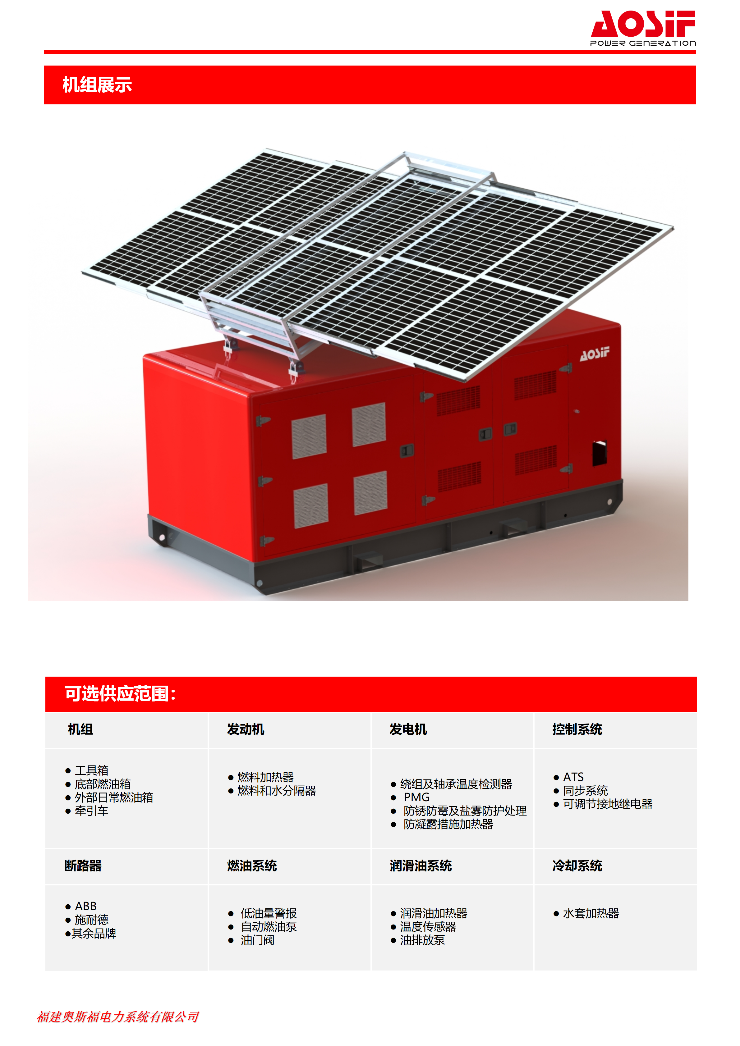 ●三级服务保证:Aosif经销商、发动机/交流发电机制造商,Aosif服务团队。