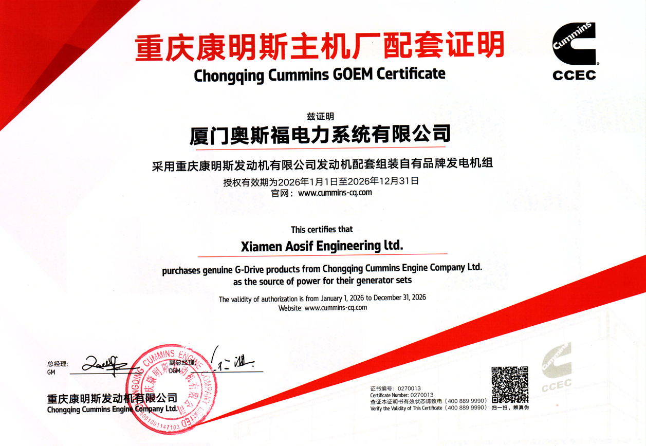 厦门奥斯福电力系统有限公司自2001年始创至今,专注于发电机组和发电机的研发与制造,在此领域积累了丰富的制造和服务经验。制造基地占地50亩,位于长泰经济开发区,营销中心设在厦门软件园三期。所有产品制造与服务遵循ISO8525及GB/T2820-97标准执行,管理体系通过ISO9001和ISO14001体系认证,产品全系列通过CE认证,从而确保奥斯福高品质的产品与服务。奥斯福相继荣获厦门市著名商标、福建省著名商标,厦门优质品牌、福建名牌产品,获得数十项专利,被授予国家高新技术企业。如今产品已远销世界各地,得到用户的普遍赞誉与认可。. .